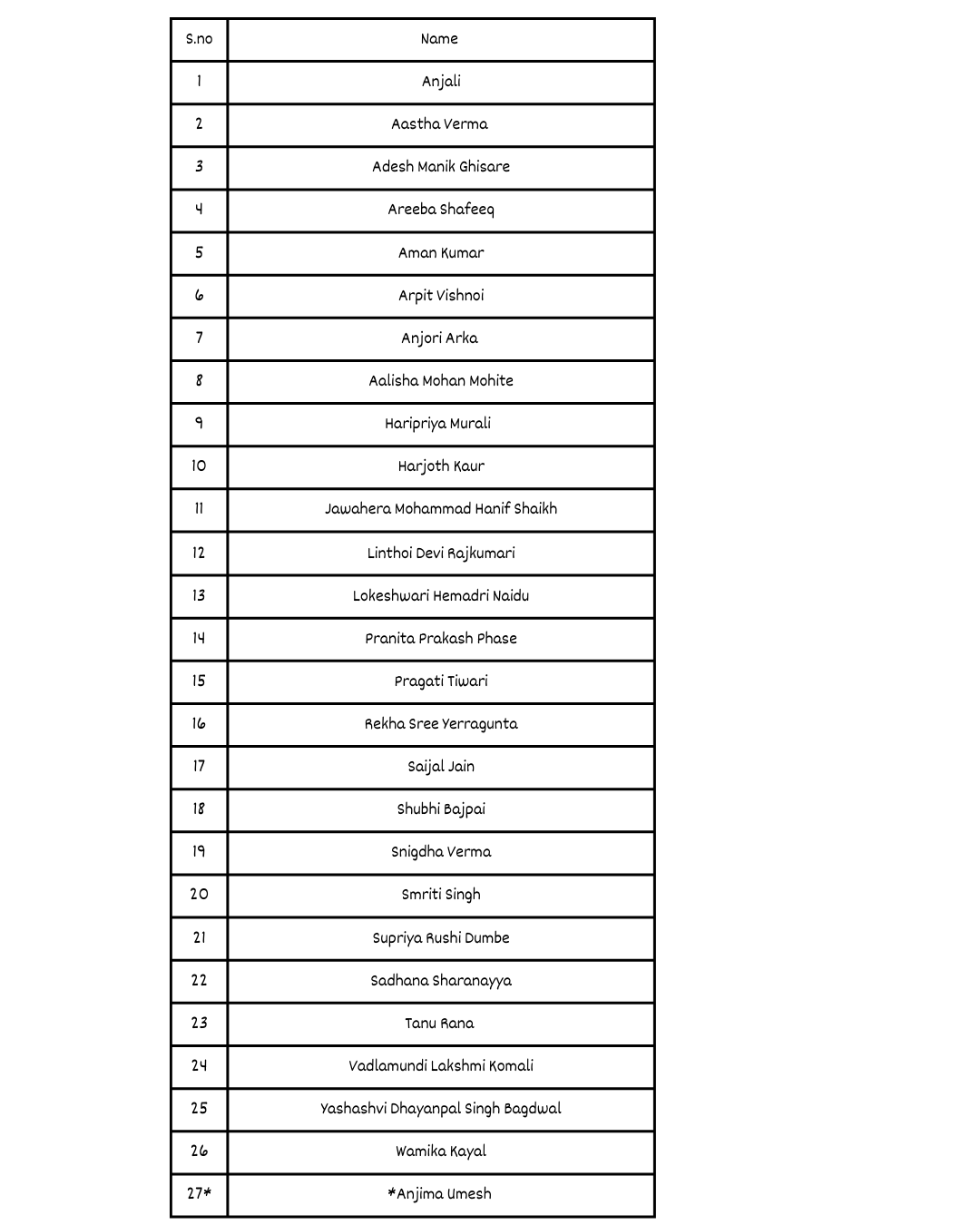 *Reserve candidate is on the waiting list and will be offered a place, should another candidate withdraw.