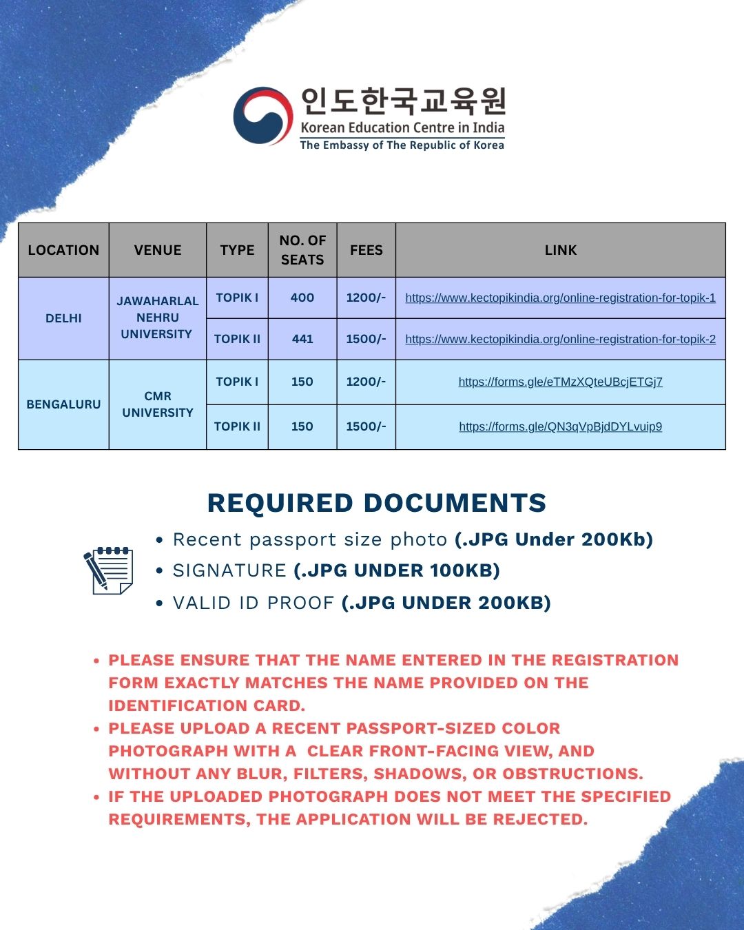 TOPIK I: https://www.kectopikindia.org/online-registration-for-topik-1